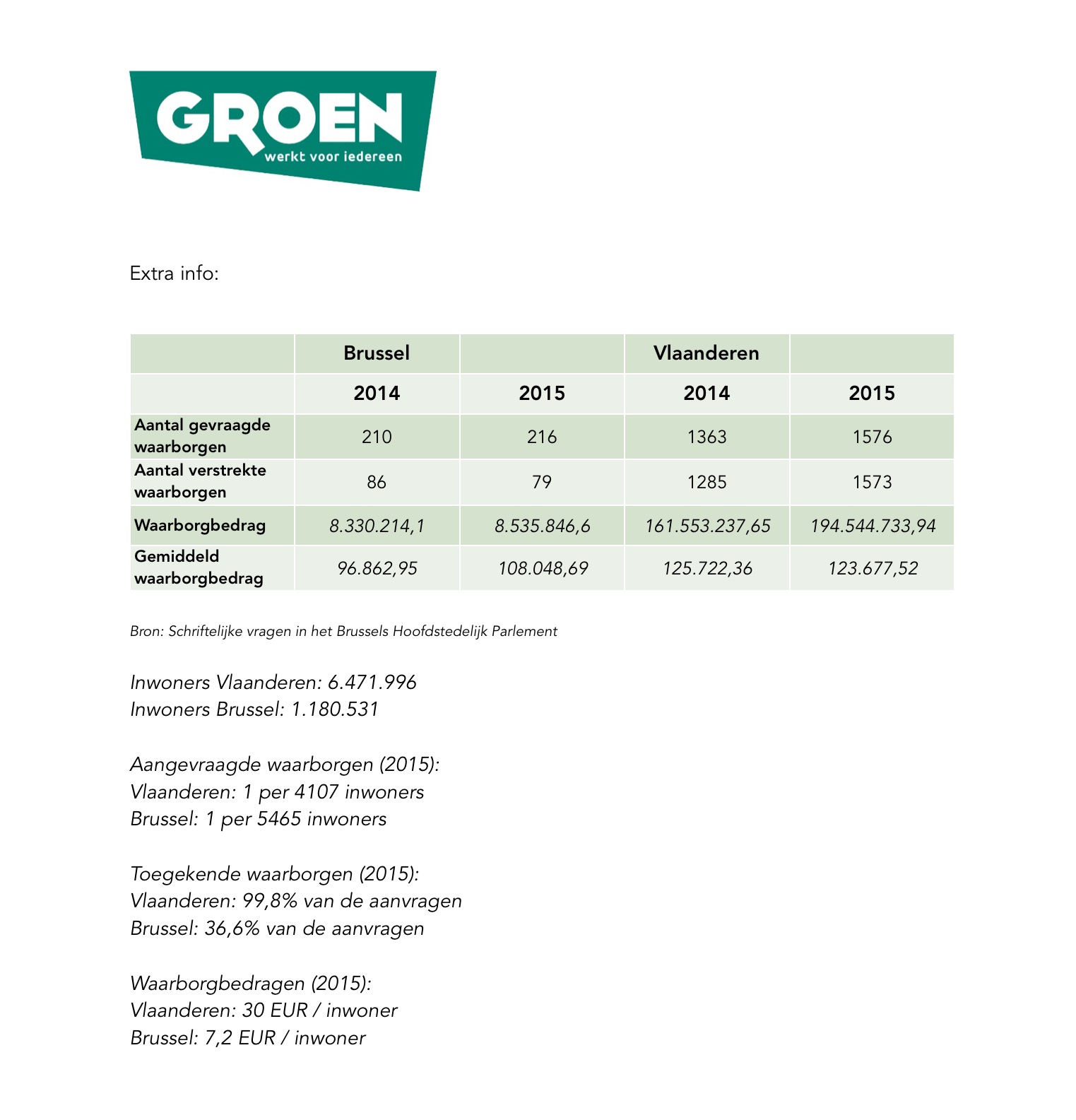 Bruno De Lille, fractieleider Groen: “Het aantal Brusselse aanvragen ligt in lijn met dat in Vlaanderen, maar het aantal toegekende Brusselse waarborgen is in verhouding 3 keer lager. Dat is een enorm concurrentienadeel voor onze bedrijven en dat kan niet.”